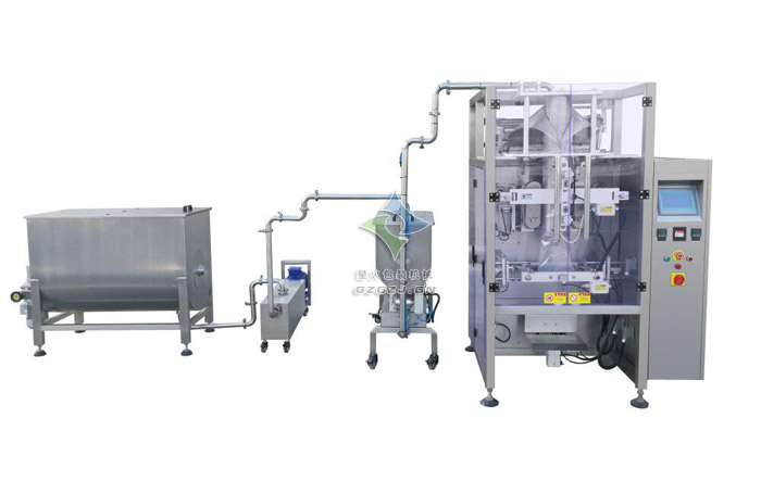 該醬料、火鍋料包裝生產線是由儲料罐、打料泵、和全自動火鍋料包裝機組合而成,針對中等黏度至含顆粒高黏度的產品灌裝需求而研制,儲料罐及灌裝機均配攪拌,很好的解決啦醬料、火鍋底料等油料分層等罐裝難題,專門針對火鍋料、醬料、香辣醬、牛肉醬等醬料產品而研制,運行穩定,效率高,重慶仔、豬圈火鍋等多家醬料生產企業選用此款設備。