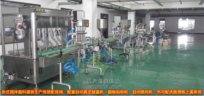 星火集團擁有雄厚的專業技術力量和高級的資深售后服務人員,多年來產品不斷創新,以完善的售后服務體系和專業的技術服務力量使我們有信心成為行業的先鋒。針對辣椒醬等醬料行業需求,研制了一系列單頭、雙頭、多頭立式攪拌醬料灌裝機、單頭雙頭臥式攪拌灌裝機、此次針對有臥式攪拌、且適合生產線工作需求的6頭、12頭臥式攪拌醬料灌裝機,大大提升了企業灌裝包裝方面的效率。